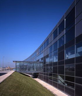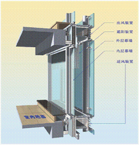 智能呼吸式幕墻按通風(fēng)原理分為自然通風(fēng)和強(qiáng)制通風(fēng)兩種系統(tǒng)。由外層幕墻,內(nèi)層幕墻、遮陽裝置,通風(fēng)裝置及控制系統(tǒng)組成。與傳統(tǒng)普通幕墻相比,最大特點(diǎn)在于其獨(dú)特的雙層結(jié)構(gòu),具有通風(fēng)換氣的功能,隔熱、隔聲,節(jié)能環(huán)保; 智能呼吸式幕墻的雙層結(jié)構(gòu)體系采用雙層玻璃,中間為70mm左右的空氣流通層。夏季,幕墻頂、底部與外界空氣相通,利用陽光加熱空氣層中的空氣溫度,實(shí)現(xiàn)幕墻內(nèi)外空氣對(duì)流,降低幕墻內(nèi)側(cè)溫度,達(dá)到通風(fēng)換氣節(jié)能效果,當(dāng)陽光過于強(qiáng)烈時(shí),還可使用幕墻內(nèi)設(shè)的小百葉調(diào)節(jié)角度,阻擋陽光射入室內(nèi)。冬季,將幕墻頂蓋封閉,使幕墻內(nèi)外空氣不能產(chǎn)生對(duì)流,利用陽光加熱空氣層,形成隔熱層,使室內(nèi)熱量不易散發(fā)。同時(shí)使用幕墻內(nèi)設(shè)的小百葉調(diào)節(jié)角度,使陽光照進(jìn)室內(nèi),達(dá)到改善室內(nèi)環(huán)境的目的;幕墻的氣密性、水密性主要通過多道膠條形成等壓腔,在結(jié)構(gòu)上形成“多腔減壓、等壓防水、減壓消氣”來得以保證,其中關(guān)鍵部位采用新型硅酮膠條,增加了膠條的抗腐蝕及抗老化性。采用雙層幕墻系統(tǒng)可以降低建筑綜合能源消耗的30%-50%。 |