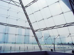 ![]() | 全玻幕墻的面板及支承均為玻璃,它與帶骨架幕墻的最大區(qū)別就在于骨架(肋)與面板同是玻璃。故全玻幕墻是一種全透明的玻璃幕墻。正因?yàn)槿D粔θ曇暗奶攸c(diǎn),整個(gè)玻璃結(jié)構(gòu)系統(tǒng)可以被清楚地看到,建筑物的內(nèi)外空間達(dá)到完美的融合,藝術(shù)感、層次感和立體感非常明顯。 |