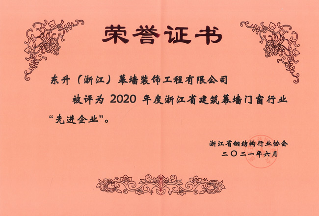 2020年度浙江省建筑幕墻門窗行業(yè)“先進(jìn)企業(yè)”
